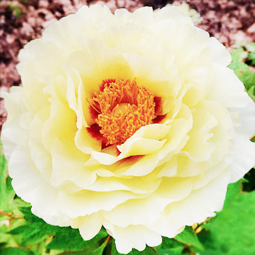 Великолепный пион Као древовидный способен достичь высоты 120-150 см. Его крупные густомахровые соцветия диаметром 20-25 см с желтой сердцевиной поражают удивительными оттенками рубина, пурпура и коралла. Обильно цветет в мае 8-15 дней, окутывая сад легким пряным ароматом.