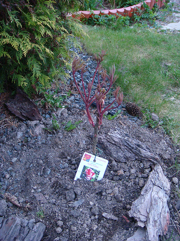 Время посадки: Древовидные пионы с открытой корневой системой высаживаются до пробуждения почек, сразу после покупки. Контейнерные пионы можно высаживать в любое время года, хотя осенние посадки предпочтительнее.